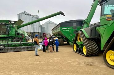 Partnering with Ag in the Classroom, we host four schools from our community near Norquay, Saskatchewan. The focus is to teach the kids about planting and seeding, the equipment farmers use, what the seed needs to grow, and how to protect it. This includes explaining soil health and fertility, seed identification, as well as crop management and pests.