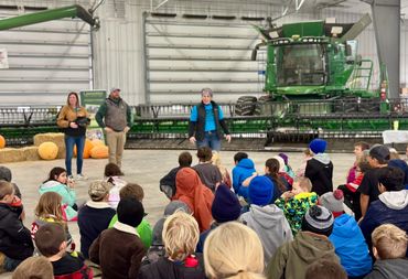 The kids are able to learn about harvesting grain, rolling out canola seeds, and seeing the oil that comes from the seed. Now they are able to connect that when they put butter on their toast, those products are grown in their backyard. We also introduce animals to educate the kids about their anatomy, proper care, and the food products derived from them.